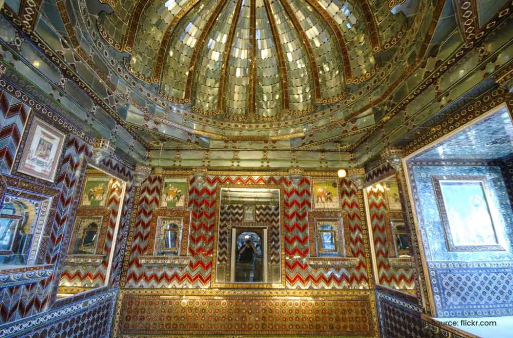 Are you ready to witness one of the fascinating spaces in the City Palace? Yes, it is the awe-inspiring Sheesh Mahal. Known as the Palace of Mirrors, it is adorned with thousands of tiny mirror pieces.